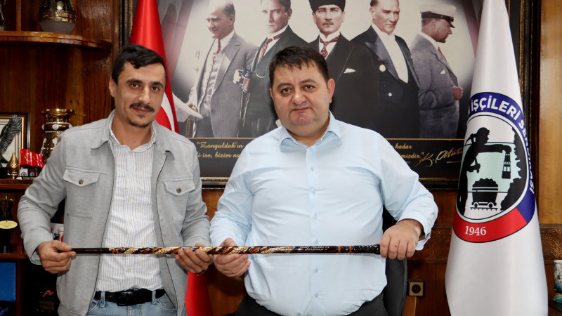 Saraçoğlu da birlik ve beraberlik mesajı vererek Genel Başkan Yeşil’e Devrek bastonu takdim etti. Saraçoğlu ve Yönetim Kurulu ardından GMİS Genel Sekreteri Yener Arslanbuğa’yı da makamında ziyaret ederek Devrek bastonu takdim etti.